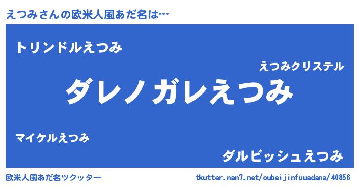 | 男性向けラノベタイトル風あだ名 | 『この素晴らしい世界にえつみを!』 |
