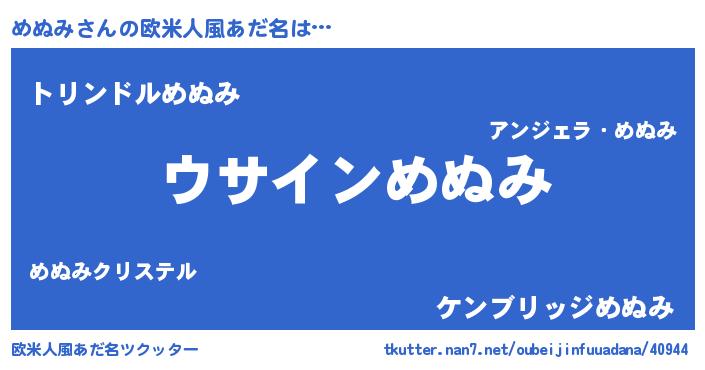 | ポケモン風あだ名 | 『ヒメヌミ』『メヌキング』 |