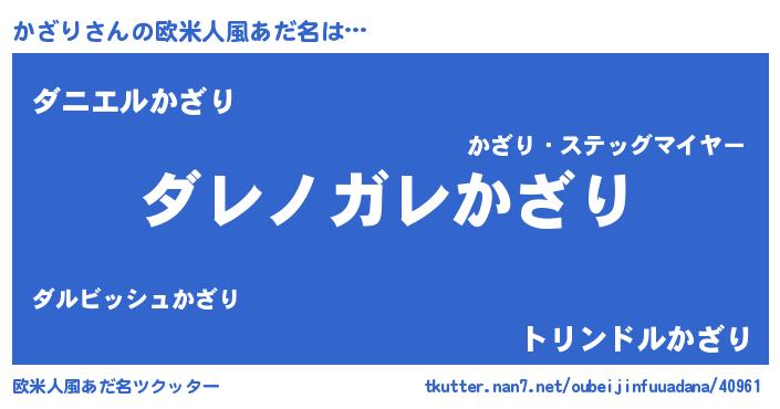 | 男性向けラノベタイトル風あだ名 | 『魔弾の王とかざり』『緋弾のカザリ』 |