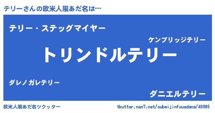 | 男性向けラノベタイトル風あだ名 | 『テリー~年齢イコール彼女いない歴の魔法使い~』 |