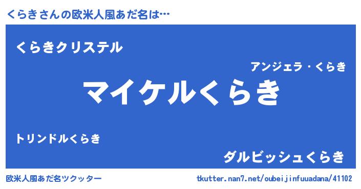 | ヒーロー風カッコイイあだ名 | 『スーパークラキ』『ウルトラくらきマン』 |