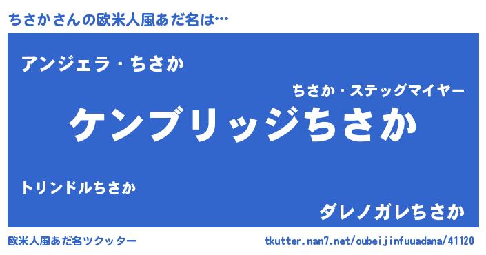 | 女子向けラノベタイトル風あだ名 | 『ちさかなんてお断りですっ。』 |