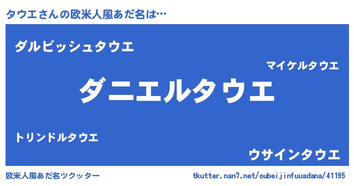 | 女子向けラノベタイトル風あだ名 | 『死神タウエの再婚』『タウエ様がみてる』 |