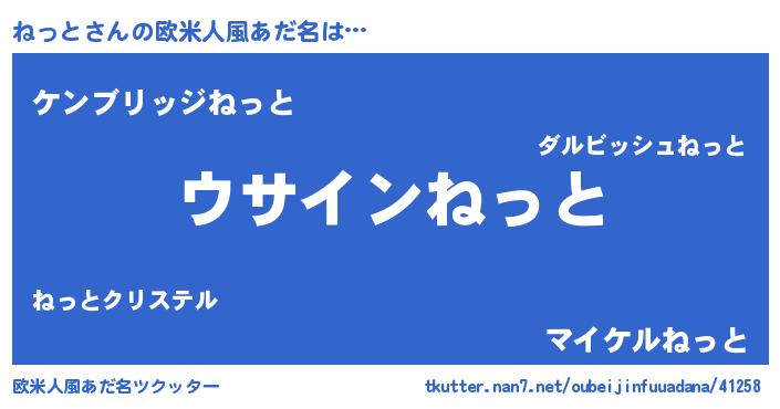 | ヒーロー風カッコイイあだ名 | 『黄金騎士ネッ』『最強戦士ネット』 |