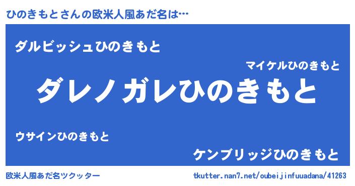 | 意味不明あだ名 | 『住所不定無職ひのきもと(77歳)』 |