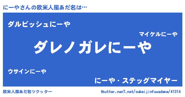 | 男性向けラノベタイトル風あだ名 | 『魔弾の王とにーや』『にーやの憂鬱』 |