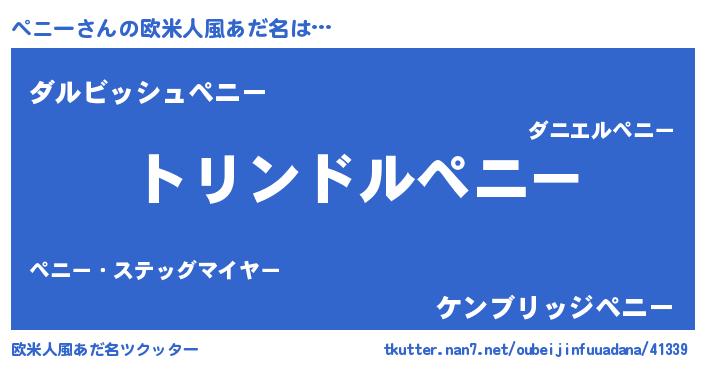 | 女子向けラノベタイトル風あだ名 | 『ペニーの玉の輿計画!』『闇のペニー』 |