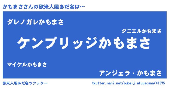 | 男性向けラノベタイトル風あだ名 | 『Re:かもまさから始める異世界生活』 |