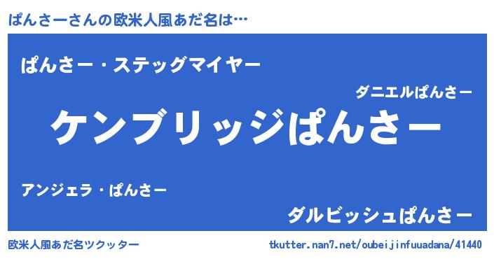 | 男性向けラノベタイトル風あだ名 | 『Re:ぱんさーから始める異世界生活』 |