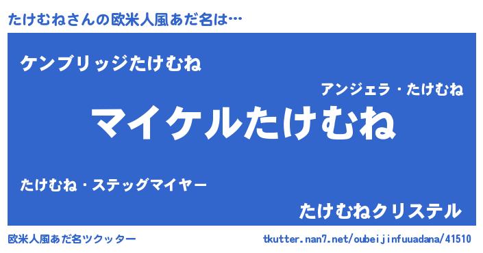 | 男性向けラノベタイトル風あだ名 | 『たけむねの憂鬱』 |