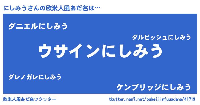 | 女子向けラノベタイトル風あだ名 | 『にしみうは平凡を望む』 |