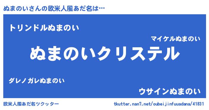 | 男性向けラノベタイトル風あだ名 | 『やはりぬまのいの青春ラブコメはまちがっている 』 |