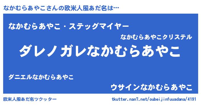 | 女子向けラノベタイトル風あだ名 | 『乙女ゲームの破滅フラグしかない悪役なかむらあやこに転生してしまった…』 |