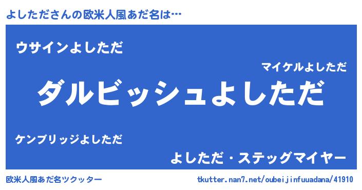 | ヒーロー風カッコイイあだ名 | 『ネオヨシタダ』『銀牙騎士ヨシ』 |