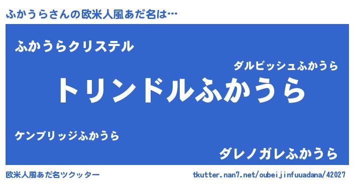 | 女子向けラノベタイトル風あだ名 | 『ふかうらの玉の輿計画!』 |