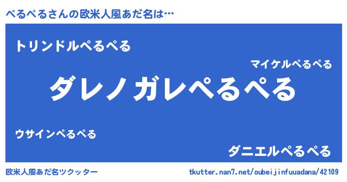 | 男性向けラノベタイトル風あだ名 | 『魔弾の王とぺるぺる』『ぺるぺるの憂鬱』 |