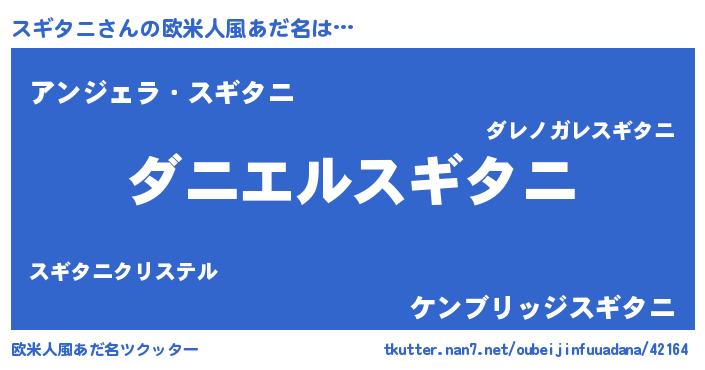 | 女子向けラノベタイトル風あだ名 | 『死神スギタニの再婚』『闇のスギタニ』 |