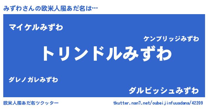 | 男性向けラノベタイトル風あだ名 | 『みずわ~年齢イコール彼女いない歴の魔法使い~』 |