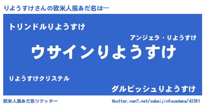 | 男性向けラノベタイトル風あだ名 | 『りようすけの嫁は女の子じゃないと思った?』 |