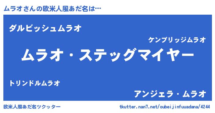 | 意味不明あだ名 | 『永久保存ムラオ』『自称ムラオ』 |