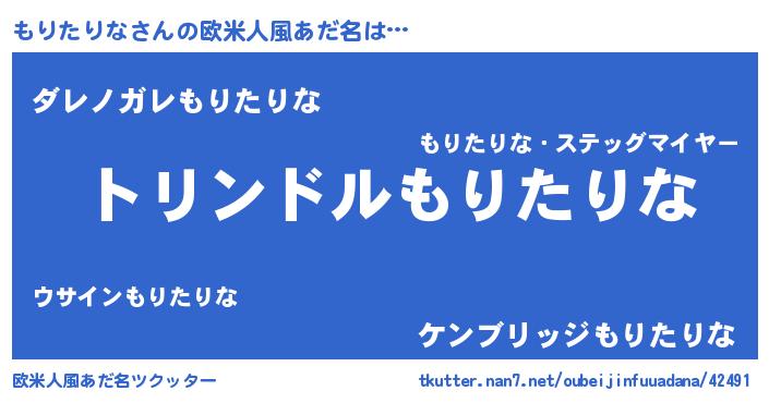 | 男性向けラノベタイトル風あだ名 | 『もりたりな~年齢イコール彼女いない歴の魔法使い~』 |