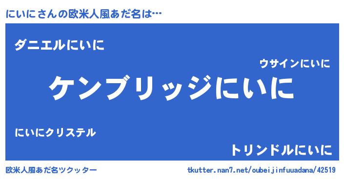 | ヒーロー風カッコイイあだ名 | 『究極戦士ニイニ』『慈愛の使者にいに』 |
