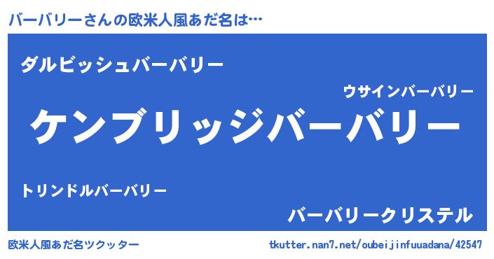 | 意味不明あだ名 | 『自称バーバリー』『永久保存バーバリー』 |
