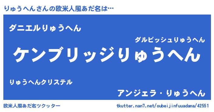 | 男性向けラノベタイトル風あだ名 | 『Re:りゅうへんから始める異世界生活』 |