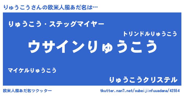| 男性向けラノベタイトル風あだ名 | 『りゅうこうの嫁は女の子じゃないと思った?』 |