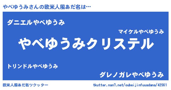 | ファンタジー風あだ名 | 『エターナルヤベユウミー』『ヤベフェル』 |
