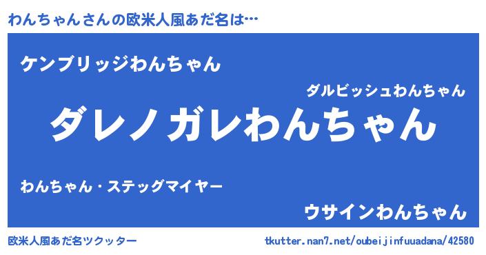 | 男性向けラノベタイトル風あだ名 | 『この素晴らしい世界にわんちゃんを!』 |