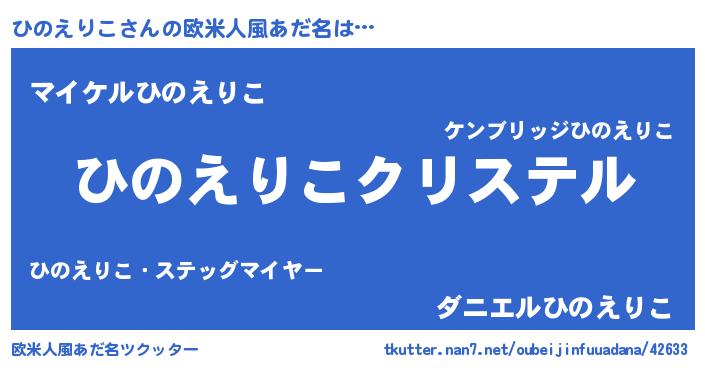 | 意味不明あだ名 | 『ひのえりこフォーエバー』 |