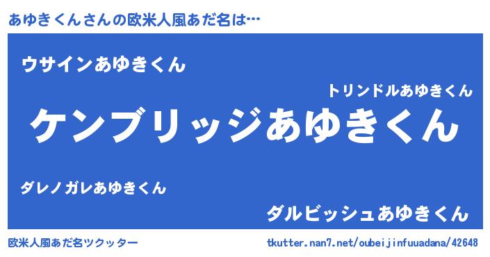 | 男性向けラノベタイトル風あだ名 | 『Re:あゆきくんから始める異世界生活』 |