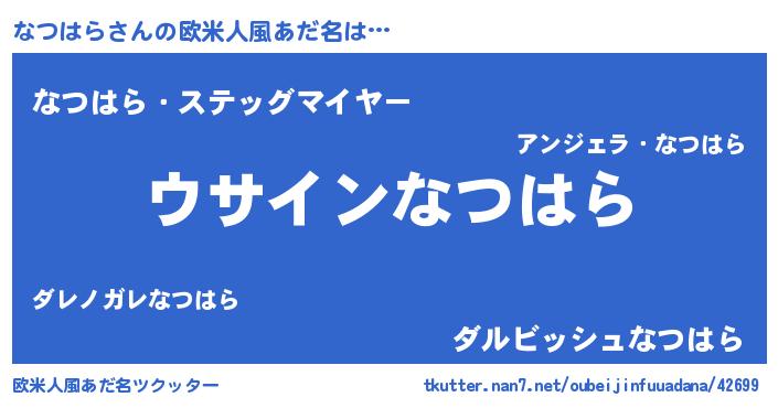 | 女子向けラノベタイトル風あだ名 | 『なつはらの卵を拾いまして』 |