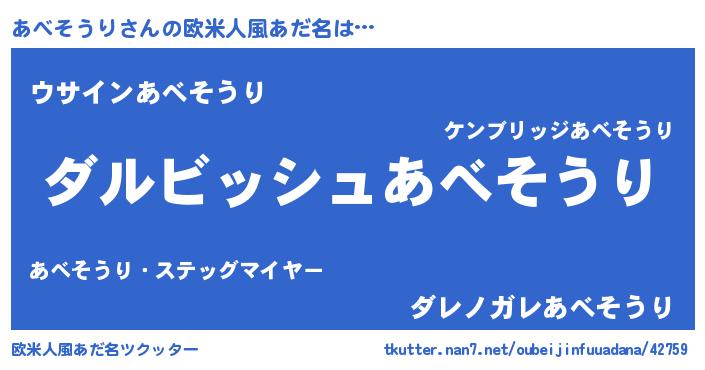 | ヘコむあだ名 | 『あべそうり(笑)』『あべ太郎』 |