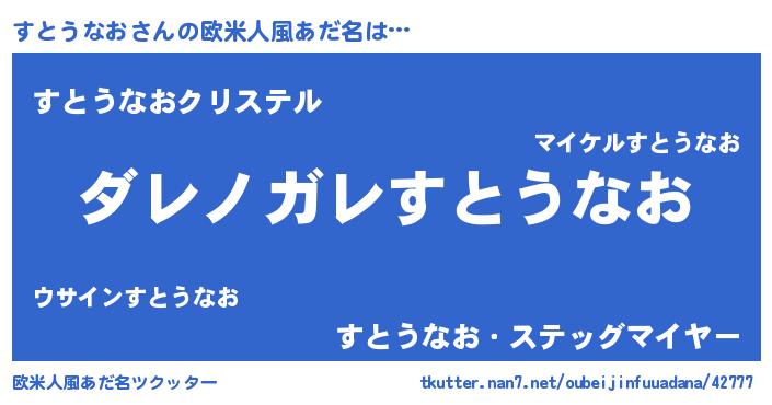 | 男性向けラノベタイトル風あだ名 | 『この素晴らしい世界にすとうなおを!』 |