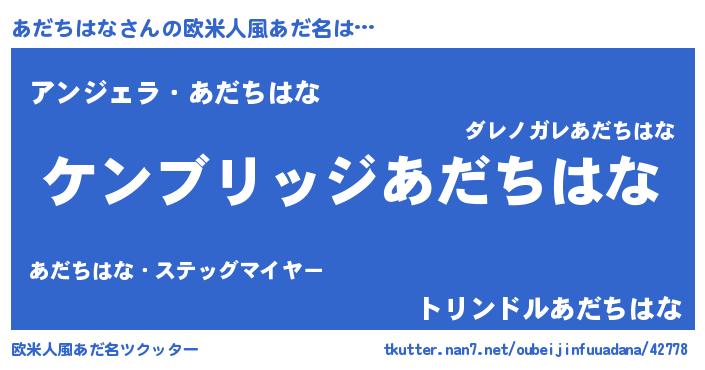 | 男性向けラノベタイトル風あだ名 | 『魔法科高校のあだちはな』 |