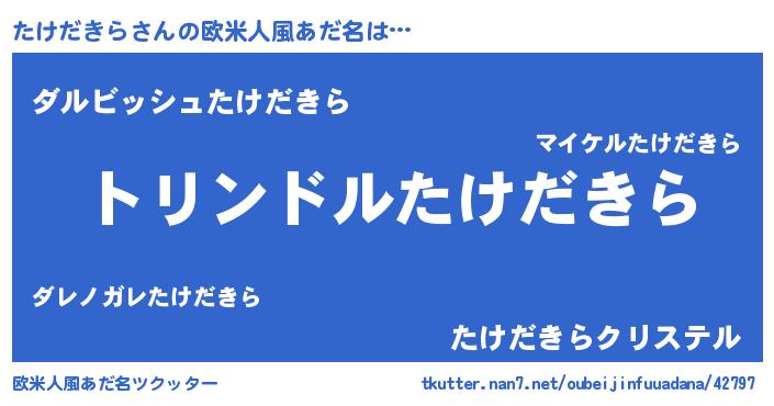 | 男性向けラノベタイトル風あだ名 | 『転生したらたけだきらだった件』 |