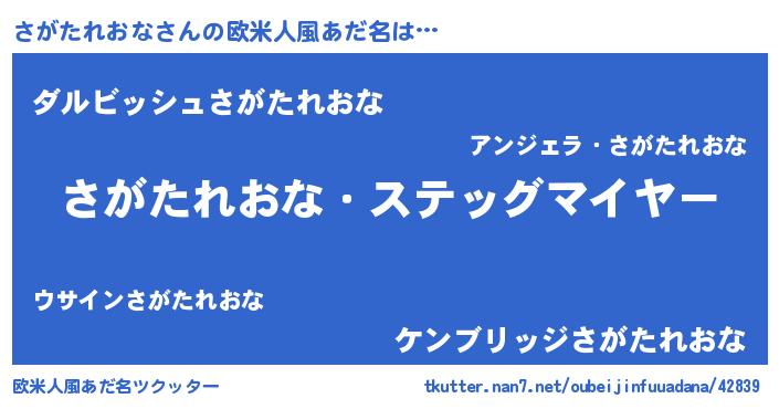 | 意味不明あだ名 | 『永久保存さがたれおな』 |