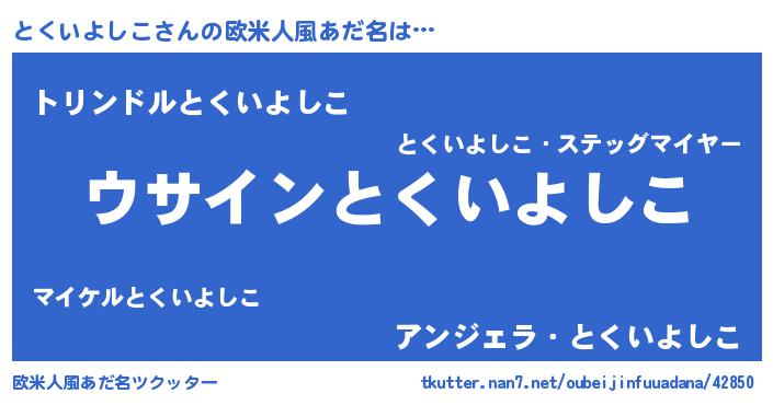 | 意味不明あだ名 | 『とにかく怪しいとくいよしこ』 |