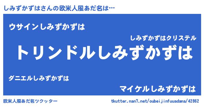 | 男性向けラノベタイトル風あだ名 | 『しみずかずは~年齢イコール彼女いない歴の魔法使い~』 |