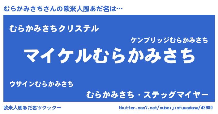 | ヒーロー風カッコイイあだ名 | 『スーパームラカミサチ』『銀牙騎士ムラ』 |