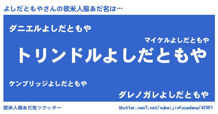 | 男性向けラノベタイトル風あだ名 | 『よしだともや~年齢イコール彼女いない歴の魔法使い~』 |