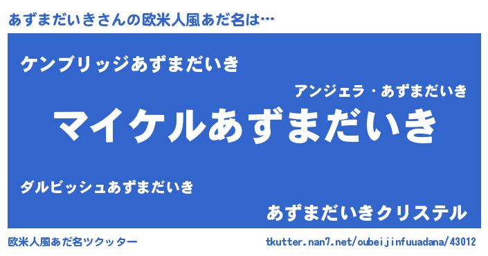| 男性向けラノベタイトル風あだ名 | 『あずまだいきの憂鬱』 |