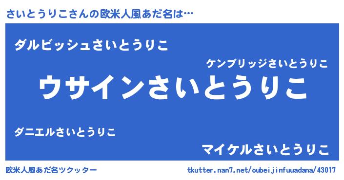 | 男性向けラノベタイトル風あだ名 | 『ダンジョンにさいとうりこを求めるのは間違っているだろうか』 |