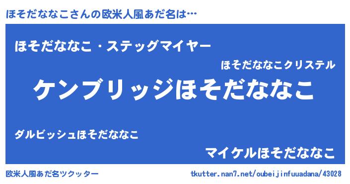 | 男性向けラノベタイトル風あだ名 | 『Re:ほそだななこから始める異世界生活』 |