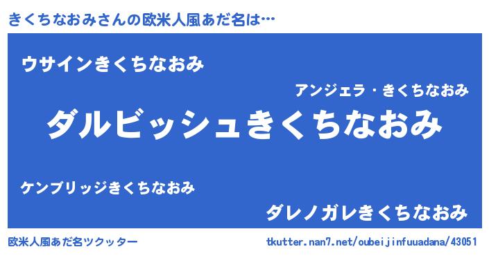 | 女子向けラノベタイトル風あだ名 | 『きくちなおみの契約王妃』 |