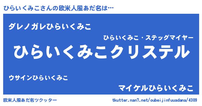 | ファンタジー風あだ名 | 『エターナルヒライクミコー』 |