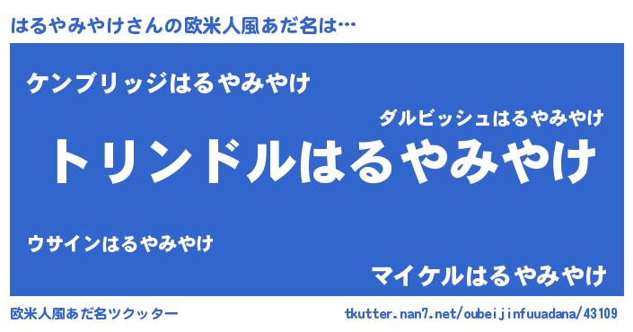 | 肩書あだ名 | 『はるやみやけ中将』『はるやみやけ閣下』 |