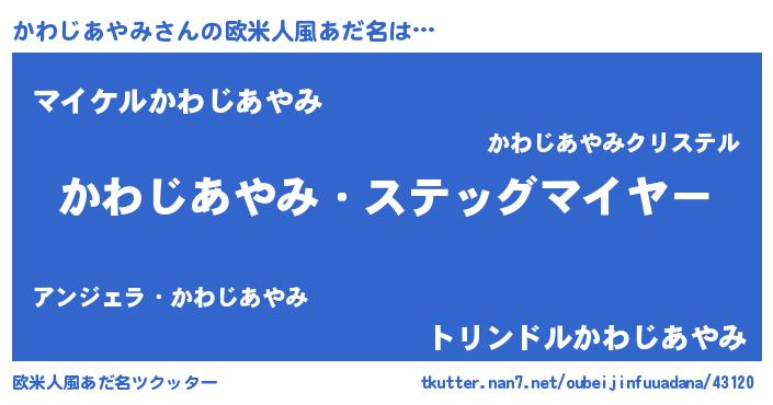 | 男性向けラノベタイトル風あだ名 | 『うちのかわじあやみが世界を掌握している!』 |